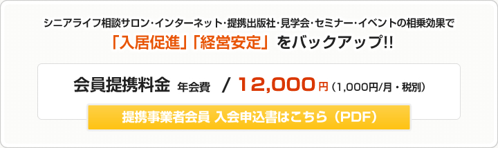 ・バナー掲載、貴社ホームページへのリンクともに提携事業者様への特典ですので、年会費12,000円(税別)に含まれております。