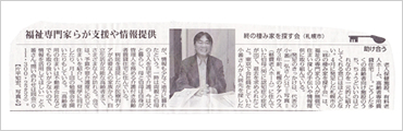 北海道新聞朝刊のサービス付き高齢者向け住宅特集の中で、NPO札幌高齢者住まいのサポートセンター代表のコメントが紹介されております。